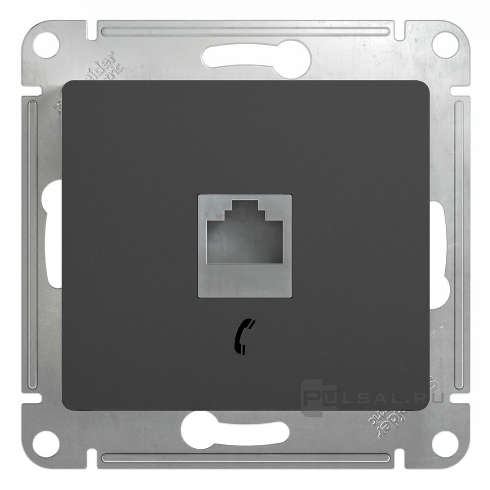 Розетка телефонная RJ11 Glossa, одинарная, цвет - антрацит