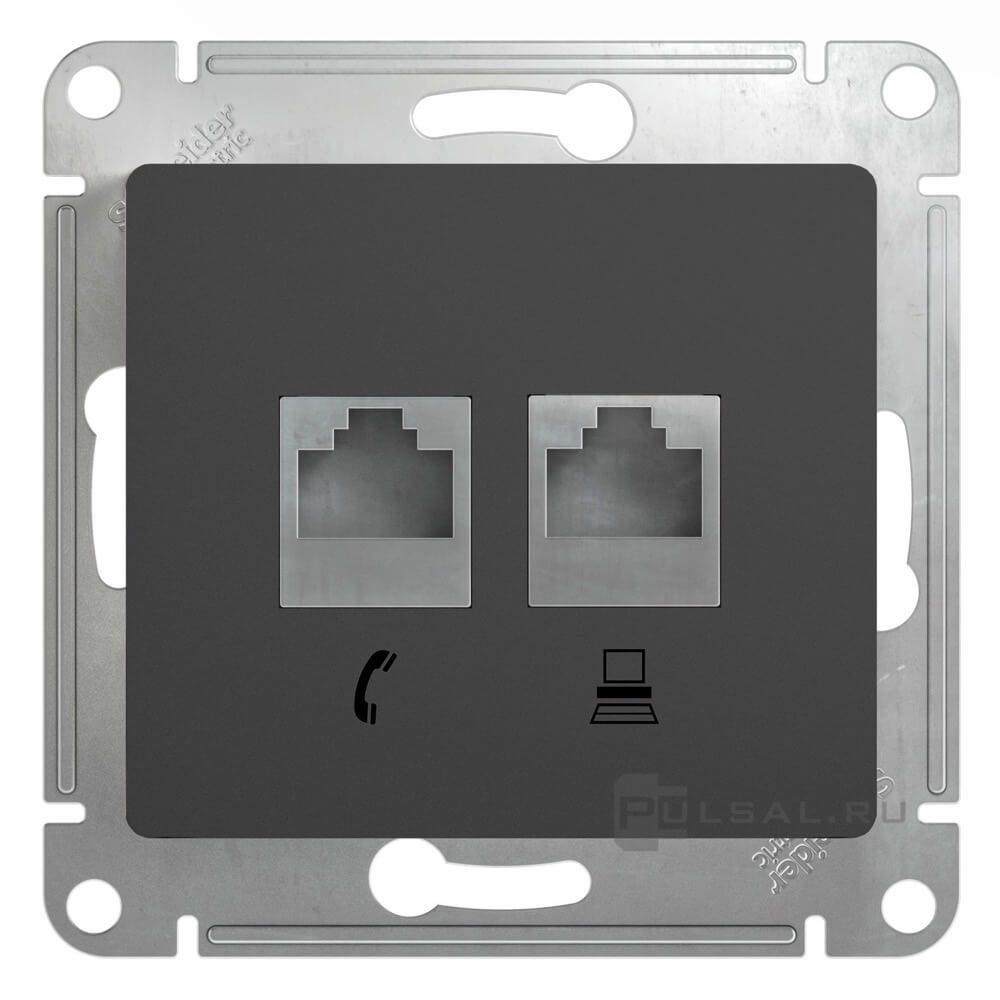 Розетка телефонная RJ11 + компьютерная RJ45 Cat.5e (UTP) Glossa, двойная, цвет - антрацит