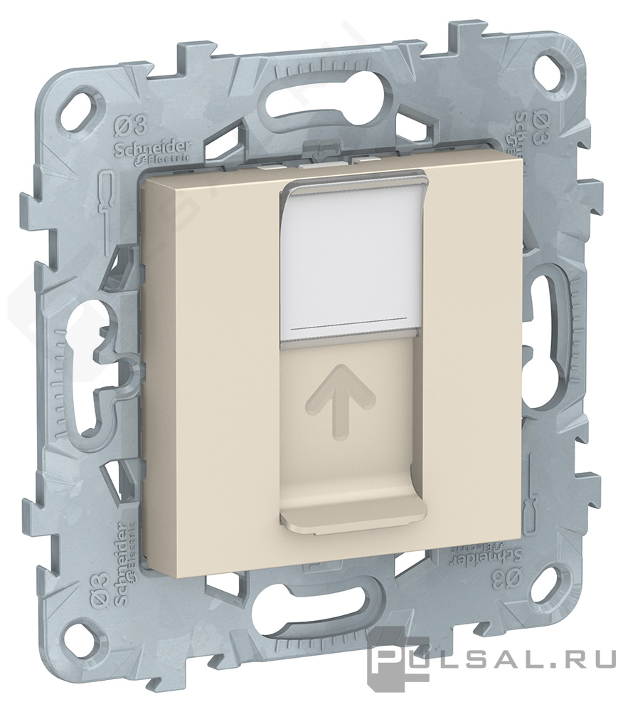 Unica New Pure, Unica New Studio, без шторок, с заземлением, одинарная, безвинтовые клеммы, цвет - бежевый