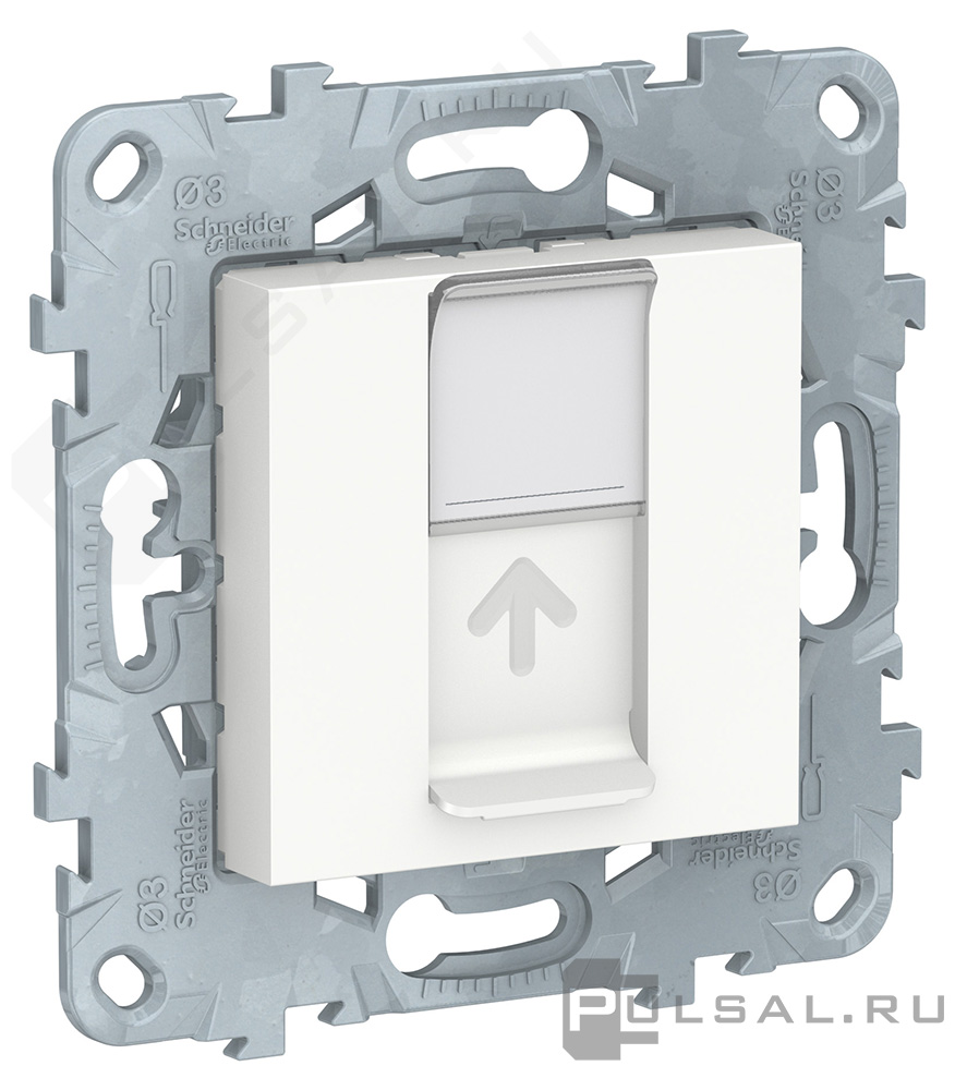 Unica New Pure, Unica New Studio, без шторок, с заземлением, одинарная, безвинтовые клеммы, цвет - белый