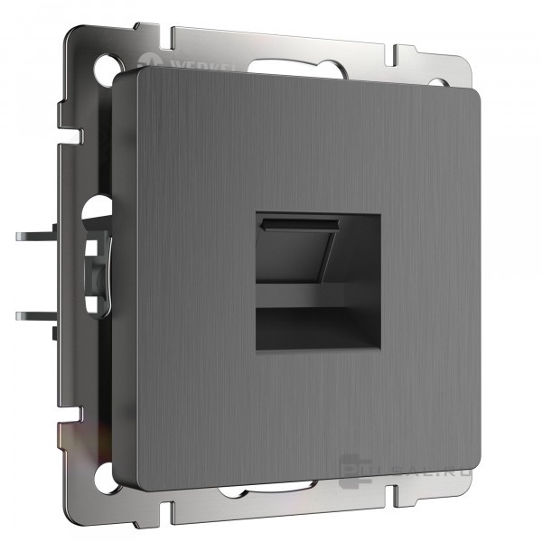 Розетка компьютерная RJ45 Кат.5е UTP Alumax, Split, Slab, Senso, Baguette, Acrylic, Platinum, Elite, Snabb, Stream, Flock, Stark, Fiore, Favorit, Diamant, Aluminium, Antik, Metallic, одинарная, цвет - графит рифленый