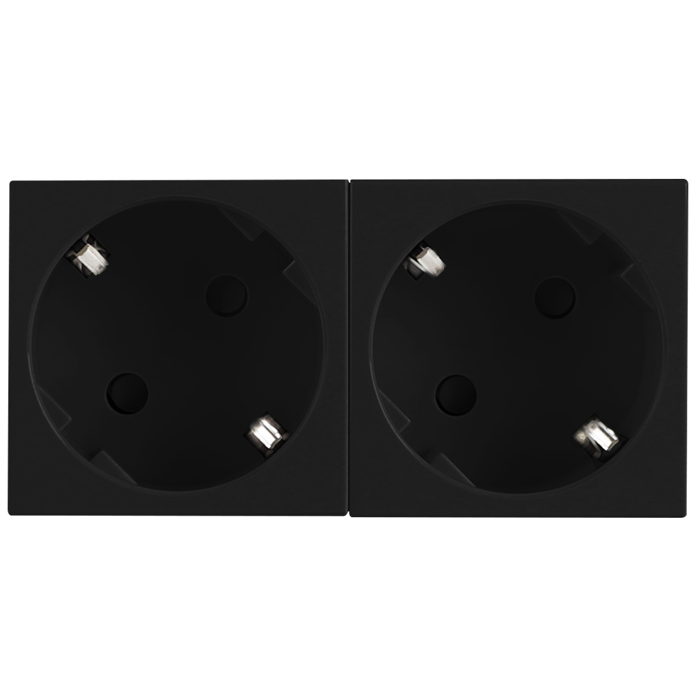 Розетка 45° W55, Лючки DDSB, Лючки DFB, со шторками, с заземлением, двойная, безвинтовые клеммы, цвет - черный