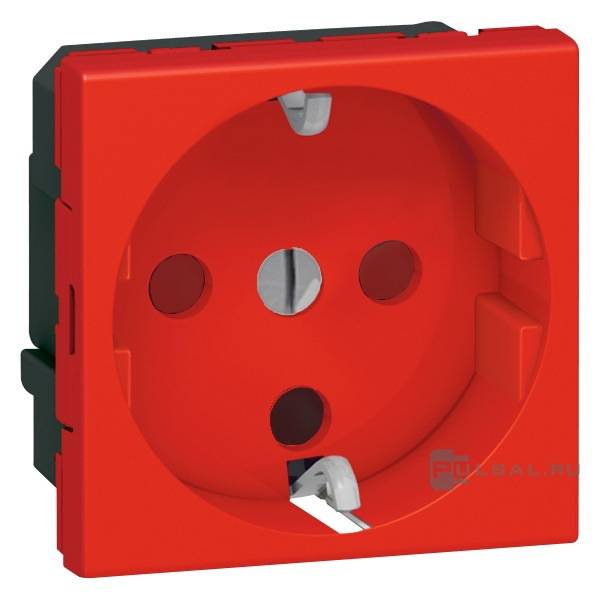 Розетка Mosaic, DLP, DLP floor, DLP IP 44, DLP IP 40, с заземлением, одинарная, безвинтовые клеммы, цвет - красный