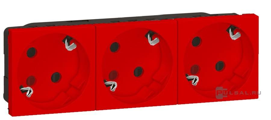 Mosaic, DLP, DLP floor, DLP IP 44, DLP IP 40, без шторок, с заземлением, одинарная, безвинтовые клеммы, цвет - красный