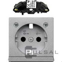 Накладка с модулем подсветки M-Plan, M-Elegance, M-Pure, M-Pure Decor, со шторками, с заземлением, одинарная, винтовые клеммы, безвинтовые клеммы, цвет - алюминий