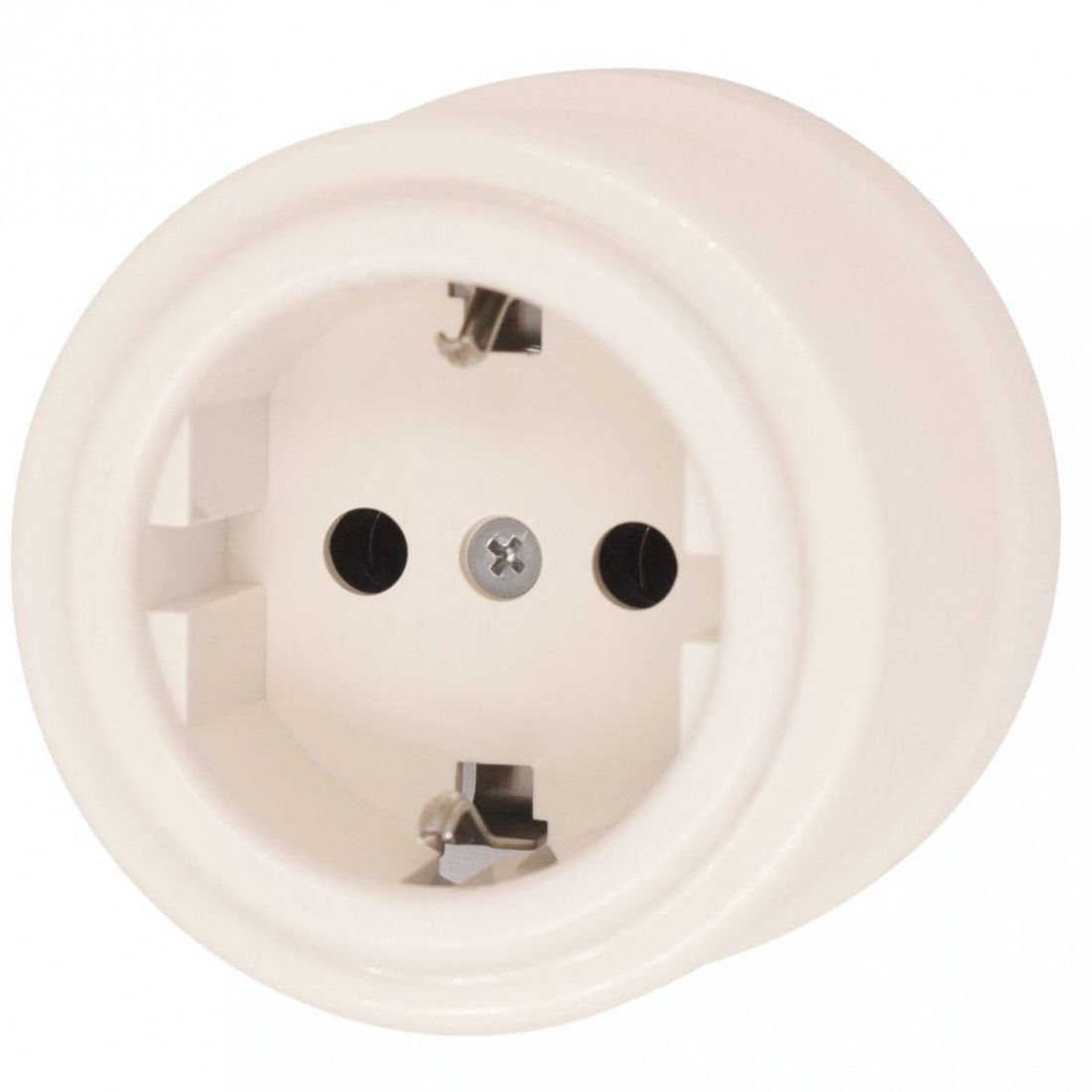 Розетка Лизетта, без шторок, с заземлением, одинарная, винтовые клеммы, цвет - слоновая кость