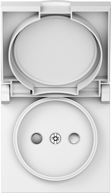 Накладка электрической розетки A07 NATURAL, A07, A07 WAVE, A07 NATURAL ROUND, со шторками, с крышкой, без заземления, одинарная, цвет - белый матовый