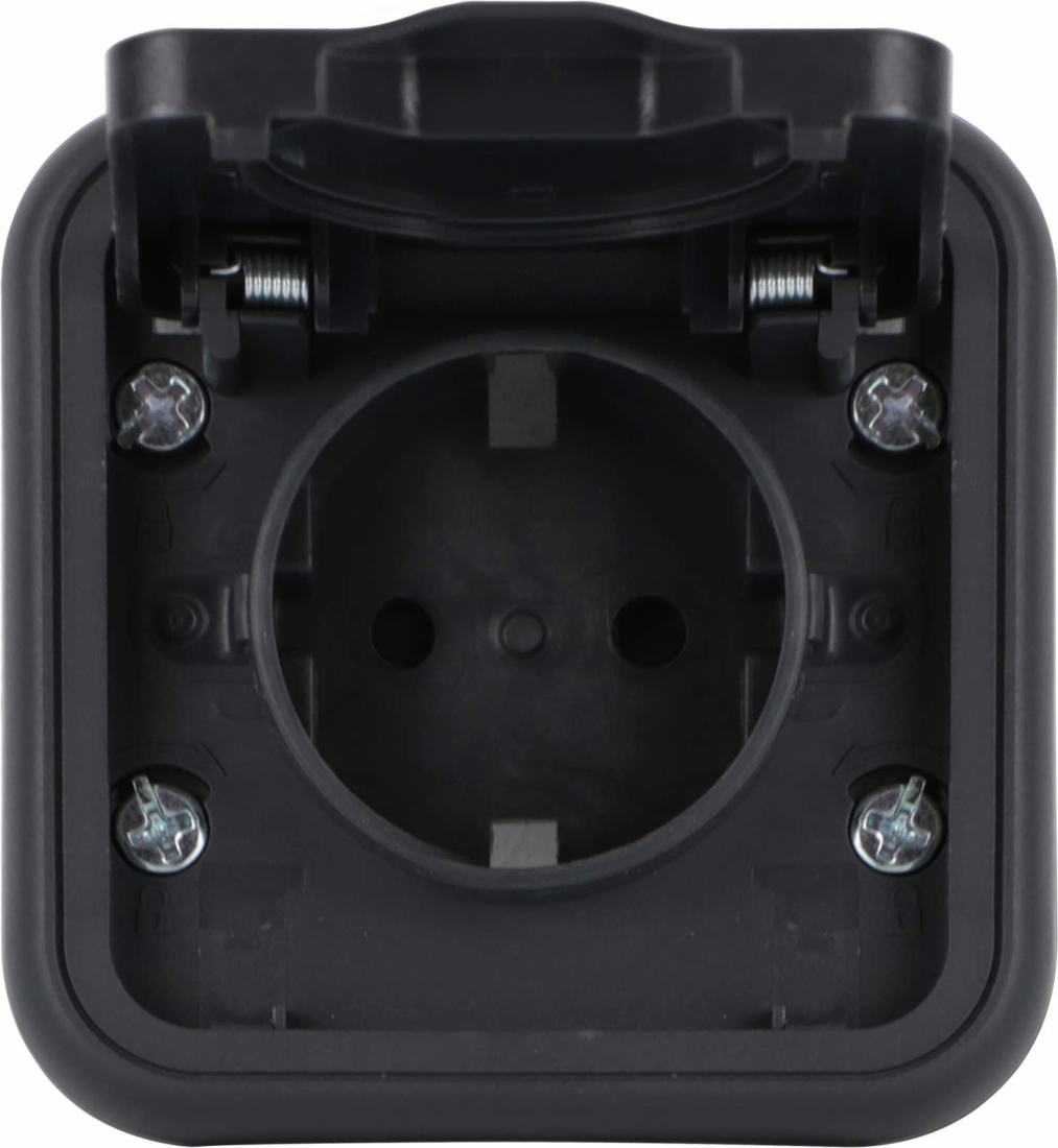 Блок розетки с выключателем / переключателем W55, со шторками, с крышкой, с заземлением, одинарная, винтовые клеммы, цвет - антрацит