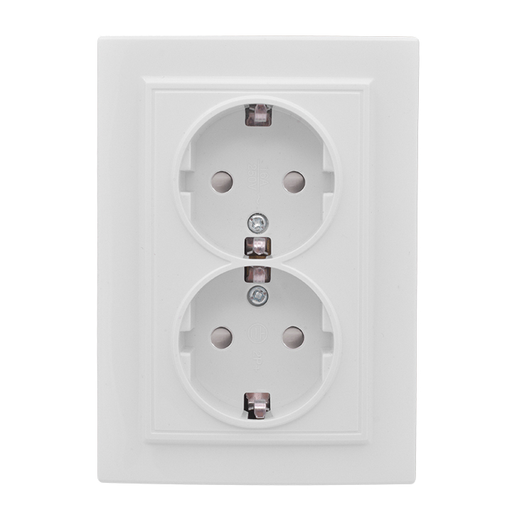 Розетка Минск, со шторками, без заземления, двойная, безвинтовые клеммы, цвет - белый