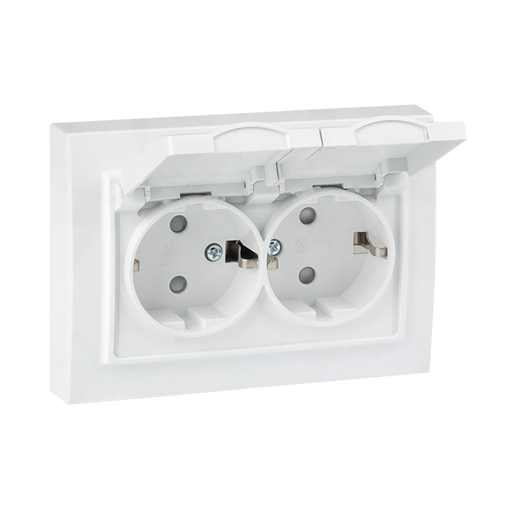 Розетка Минск, со шторками, без заземления, двойная, безвинтовые клеммы, цвет - белый