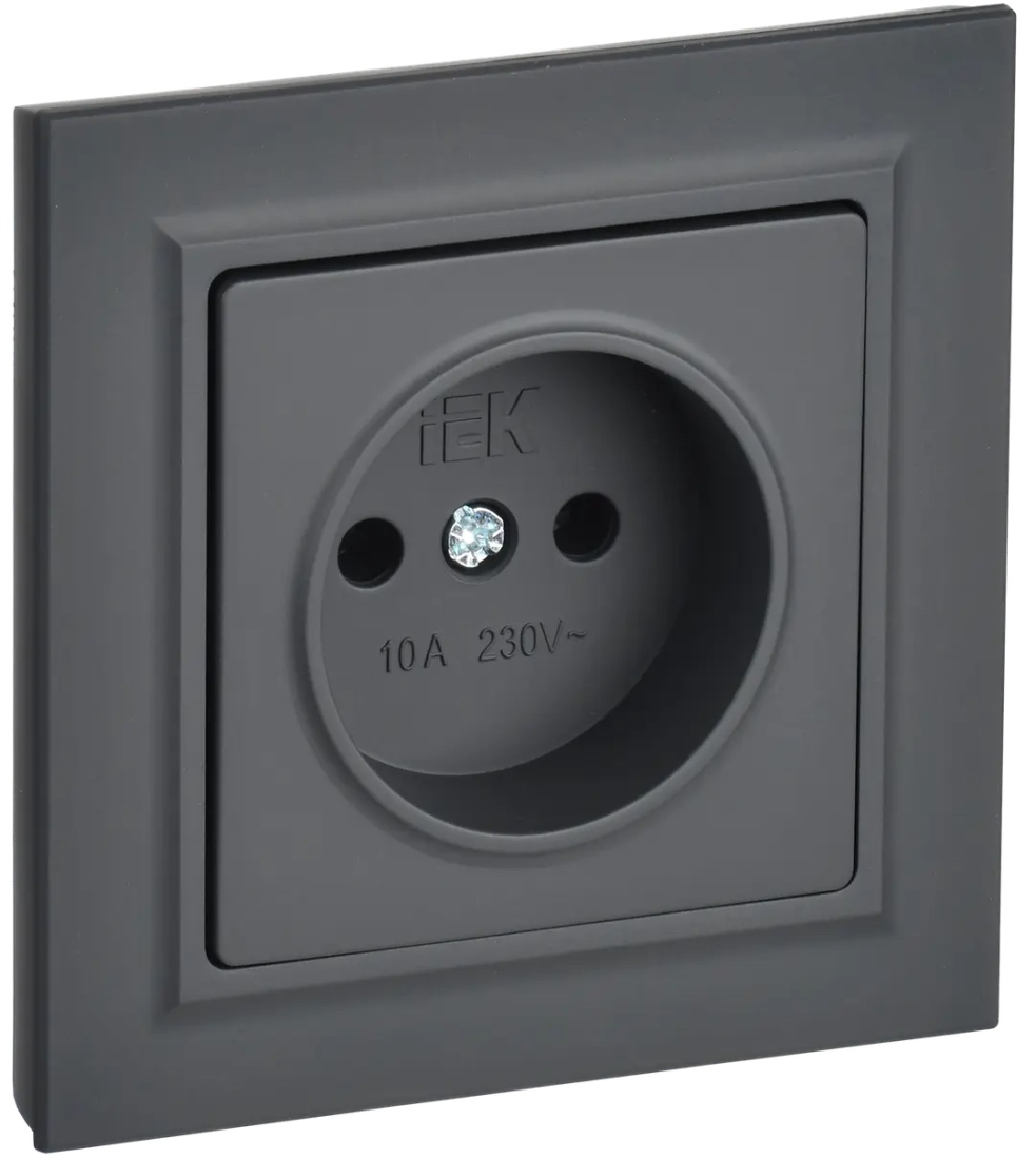 Розетка с рамкой BRITE, со шторками, с заземлением, одинарная, винтовые клеммы, цвет - графит