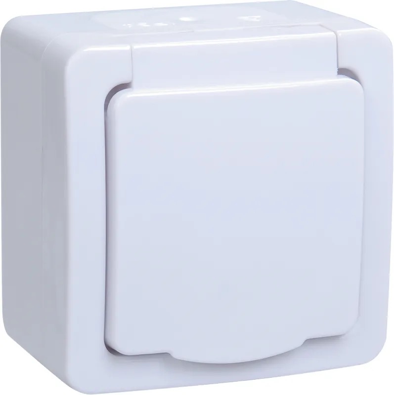 Розетка ГЕРМЕС PLUS, со шторками, с крышкой, с заземлением, одинарная, винтовые клеммы, цвет - белый, дымчатый