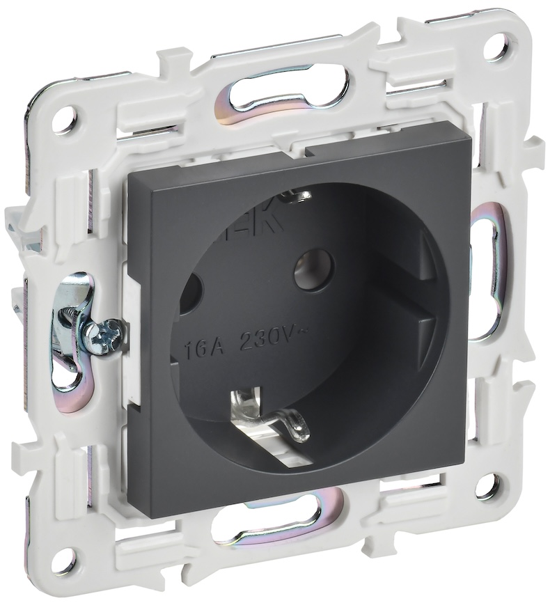 Розетка Skandy, без шторок, с заземлением, одинарная, винтовые клеммы, цвет - титан