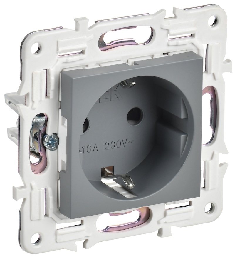Розетка Skandy, со шторками, с заземлением, одинарная, безвинтовые клеммы, цвет - серый
