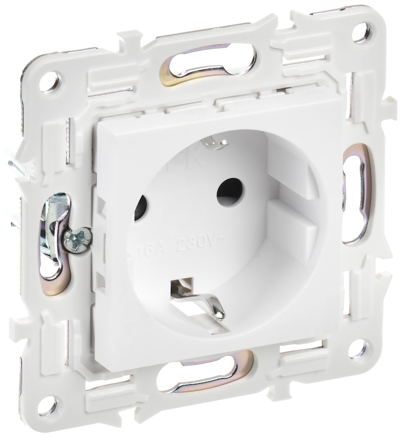 Розетка Skandy, со шторками, с заземлением, одинарная, винтовые клеммы, цвет - белый