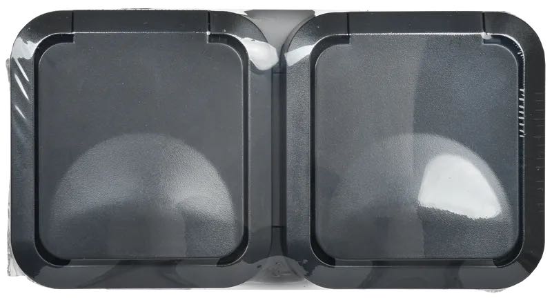 Розетка (горизонтальный блок) TORS, со шторками, с крышкой, с заземлением, двойная, безвинтовые клеммы, цвет - графит