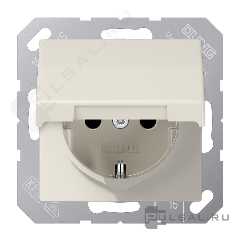 Розетка AS 500, без шторок, с крышкой, с заземлением, одинарная, безвинтовые клеммы, цвет - слоновая кость