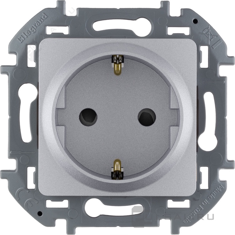 Розетка Inspiria, со шторками, с заземлением, одинарная, винтовые клеммы, цвет - алюминий