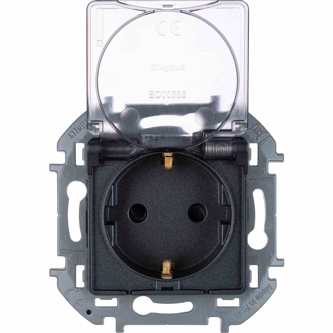Розетка Inspiria, со шторками, с крышкой, с заземлением, одинарная, винтовые клеммы, цвет - антрацит