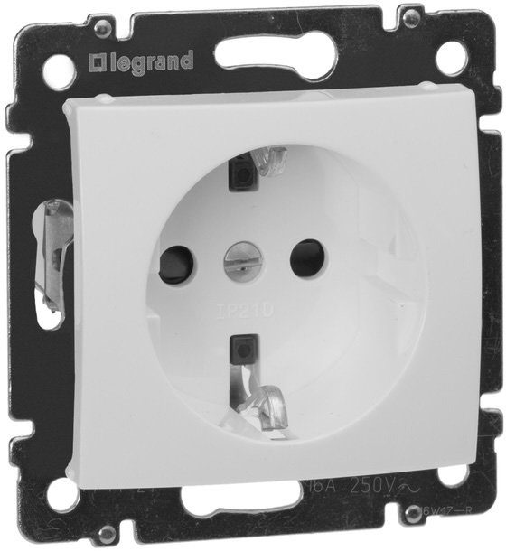 Розетка Valena, со шторками, с заземлением, одинарная, винтовые клеммы, цвет - белый