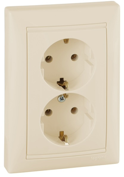 Розетка Valena, без шторок, с заземлением, двойная, винтовые клеммы, цвет - слоновая кость