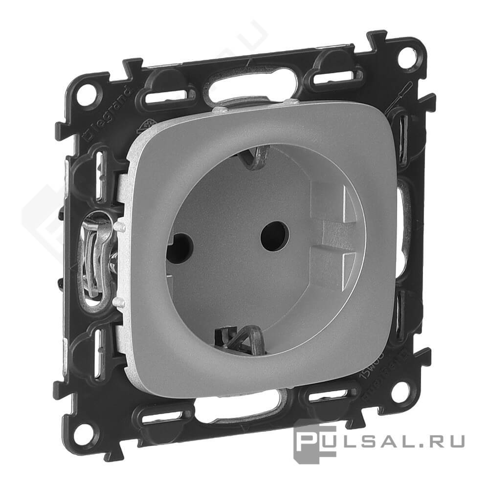 Умная розетка Netatmo, Valena Allure, со шторками, с заземлением, одинарная, безвинтовые клеммы, цвет - алюминий