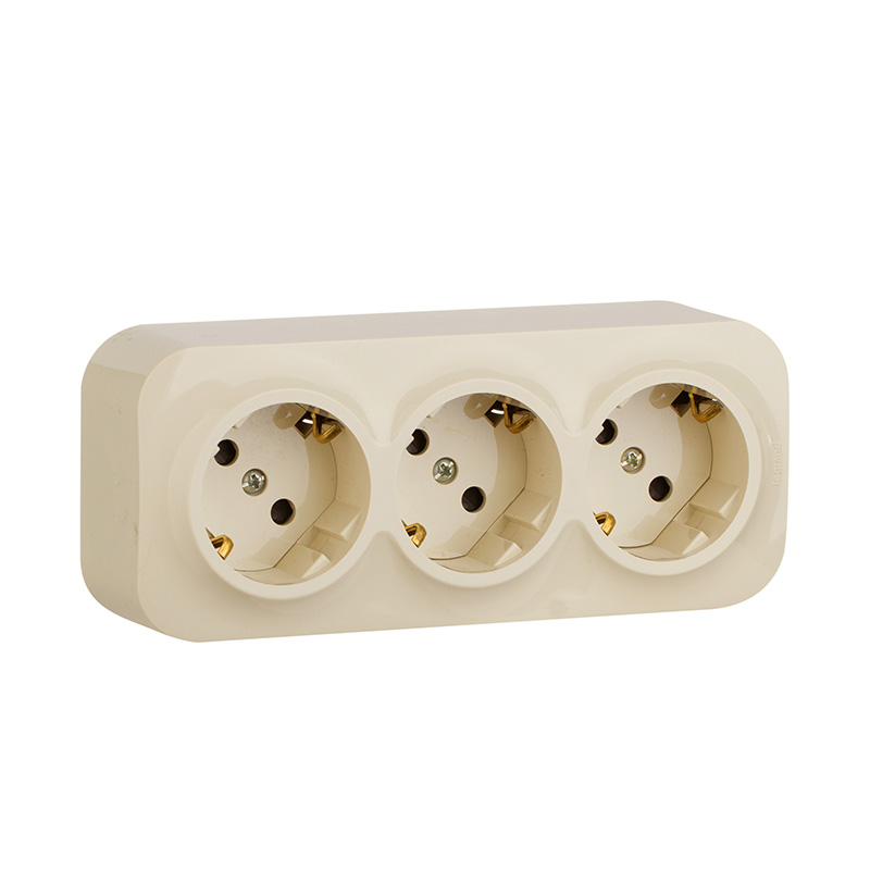 Quteo, со шторками, с заземлением, тройная, винтовые клеммы, цвет - слоновая кость
