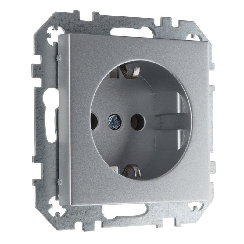 Розетка Epsilon, Retro Liregus, без шторок, с заземлением, одинарная, винтовые клеммы, цвет - алюминий