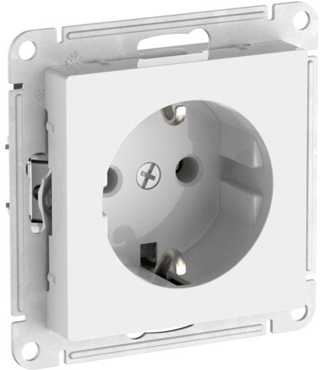 Розетка с выталкиванием вилки Atlas Design Antique, AtlasDesign Air, Atlas Design, со шторками, с заземлением, одинарная, винтовые клеммы, цвет - белый