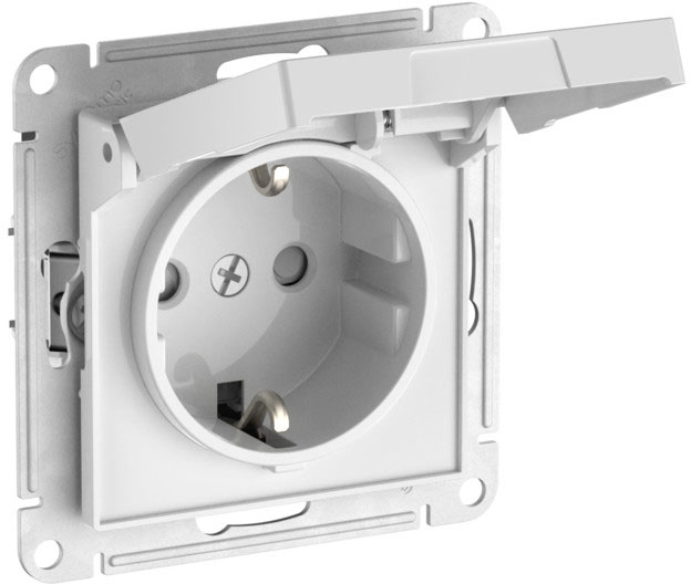 Розетка (безвинтовые клеммы) Atlas Design Antique, AtlasDesign Air, Atlas Design, со шторками, с крышкой, с заземлением, одинарная, безвинтовые клеммы, цвет - белый