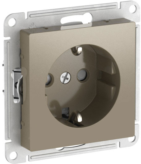 Розетка (безвинтовые клеммы) Atlas Design Antique, AtlasDesign Air, Atlas Design, со шторками, с заземлением, одинарная, безвинтовые клеммы, цвет - шампань