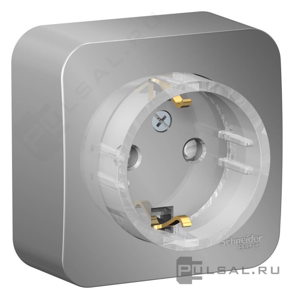 Розетка с изолирующей пластиной Blanca, без шторок, с заземлением, одинарная, цвет - алюминий