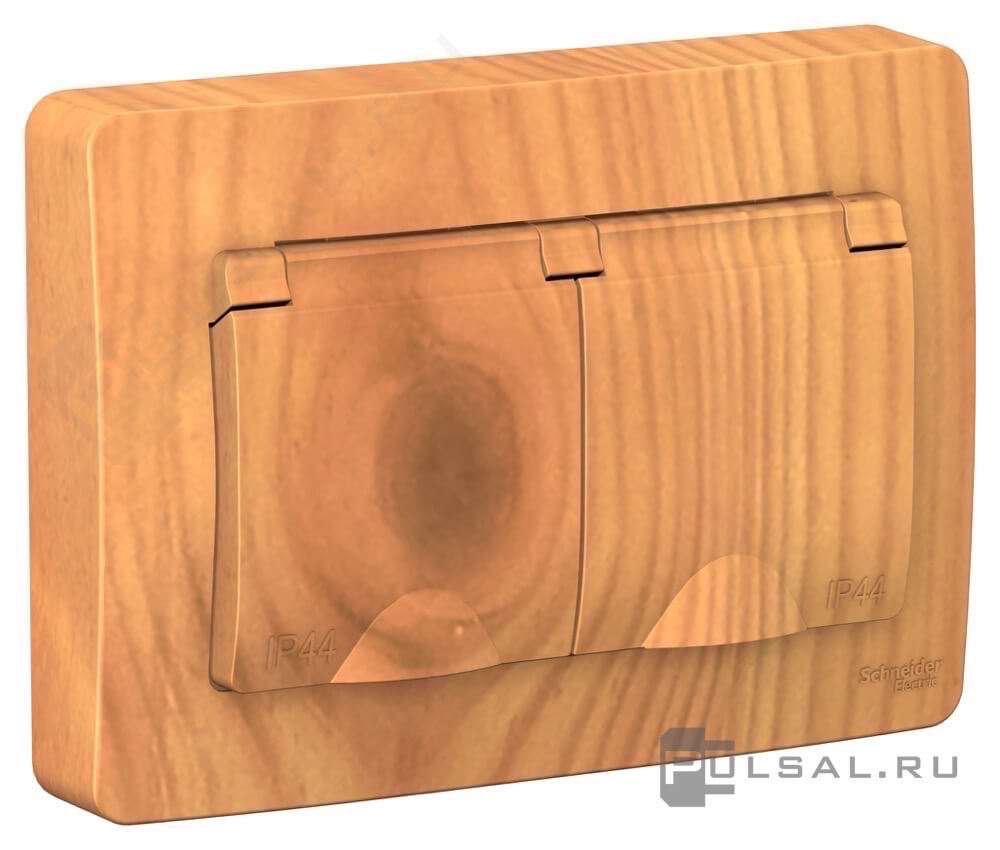 Выключатель 10 А Blanca, двухклавишный, с подсветкой, цвет - ясень