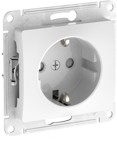 Розетка (безвинтовые клеммы) Glossa, со шторками, с заземлением, одинарная, безвинтовые клеммы, цвет - белый