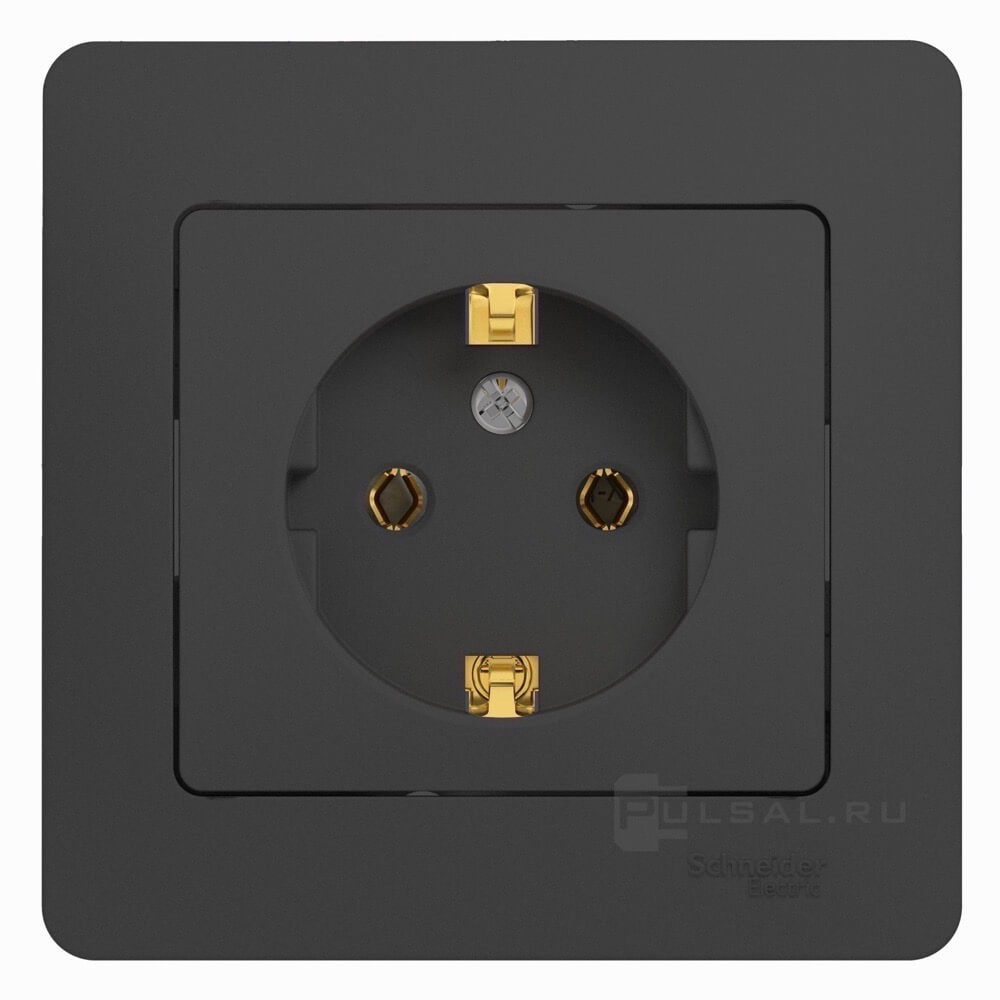 Розетка с рамкой Glossa, без шторок, с заземлением, одинарная, винтовые клеммы, цвет - антрацит