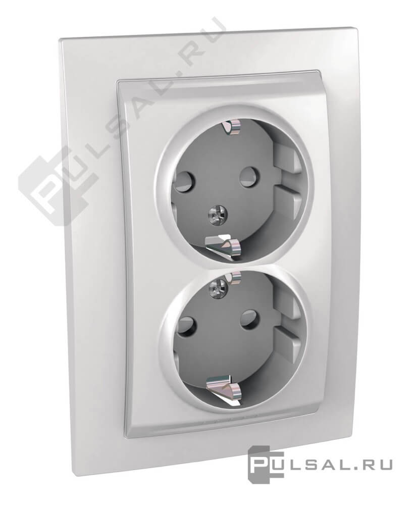 Unica Базовая, Unica Хамелеон, Unica Quadro, со шторками, без заземления, двойная, винтовые клеммы, цвет - белый