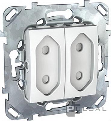 Розетка Unica Базовая, Unica Хамелеон, Unica Quadro, со шторками, без заземления, двойная, винтовые клеммы, цвет - белый