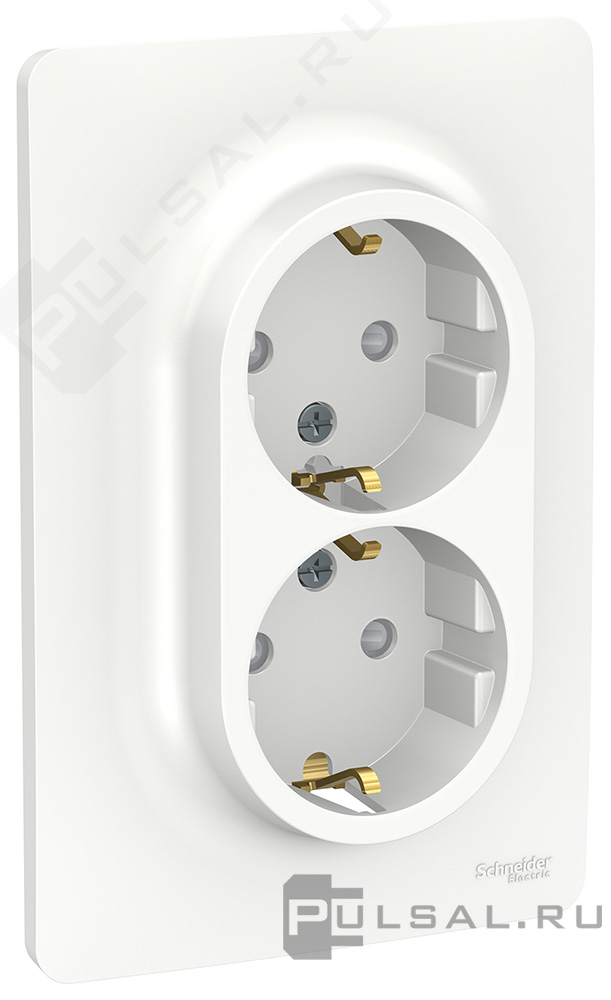 Розетка моноблок Unica New Studio, со шторками, с заземлением, двойная, винтовые клеммы, цвет - белый