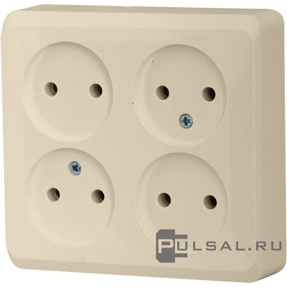 Этюд, со шторками, с заземлением, четверная, винтовые клеммы, цвет - кремовый