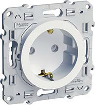 Розетка Odace, со шторками, с заземлением, одинарная, винтовые клеммы, цвет - белый