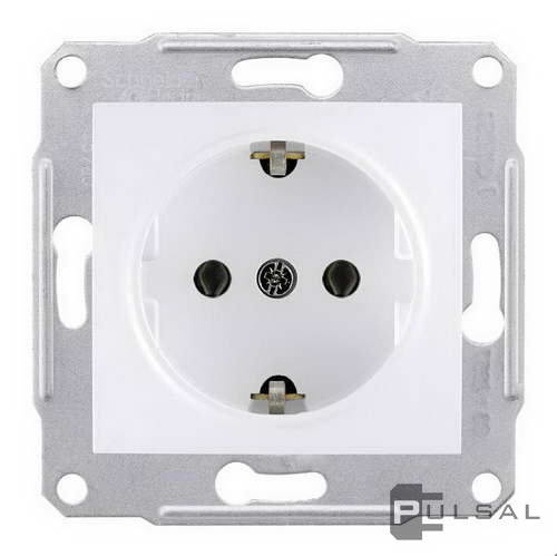 Розетка Sedna, без шторок, с заземлением, одинарная, винтовые клеммы, цвет - белый