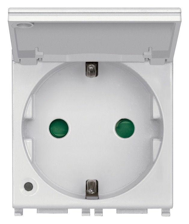 Plana, Plana Up, со шторками, с заземлением, одинарная, безвинтовые клеммы, цвет - серебристый