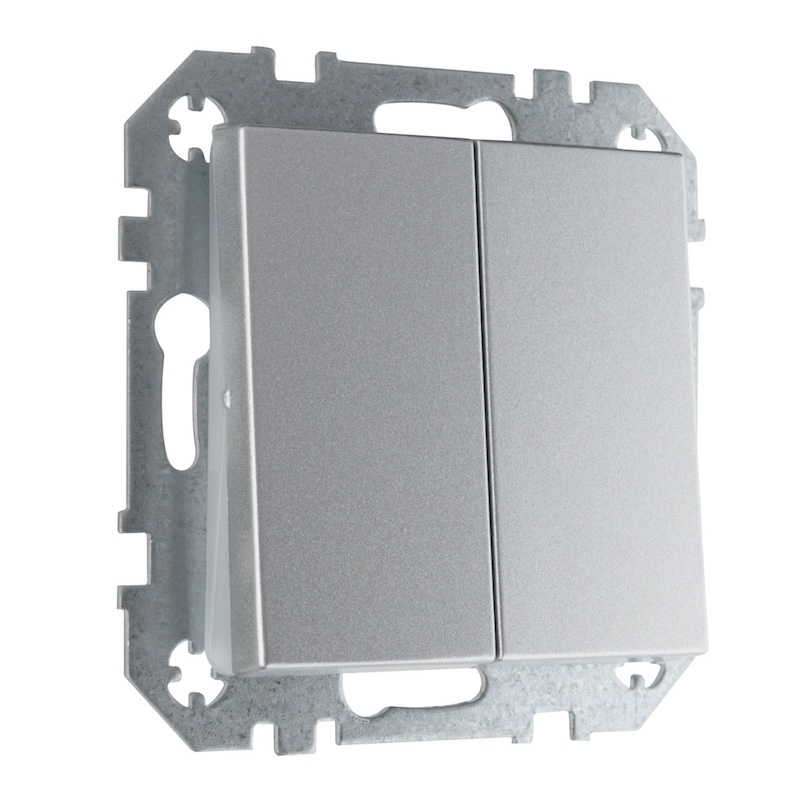 Выключатель Epsilon, Retro Liregus, одноклавишный, без подсветки, с возможностью подсветки, цвет - алюминий