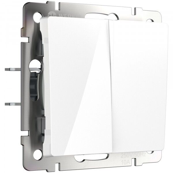 Кнопка Н.О.+Н.О. Alumax, Split, Slab, Senso, Baguette, Acrylic, Platinum, Elite, Snabb, Stream, Flock, Stark, Fiore, Favorit, Diamant, Aluminium, Antik, Metallic, двухклавишный, цвет - белый