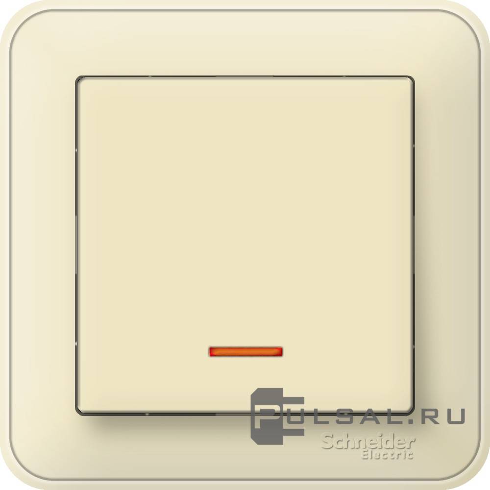 Выключатель двухполюсный 10А W59, одноклавишный, без подсветки, цвет - слоновая кость