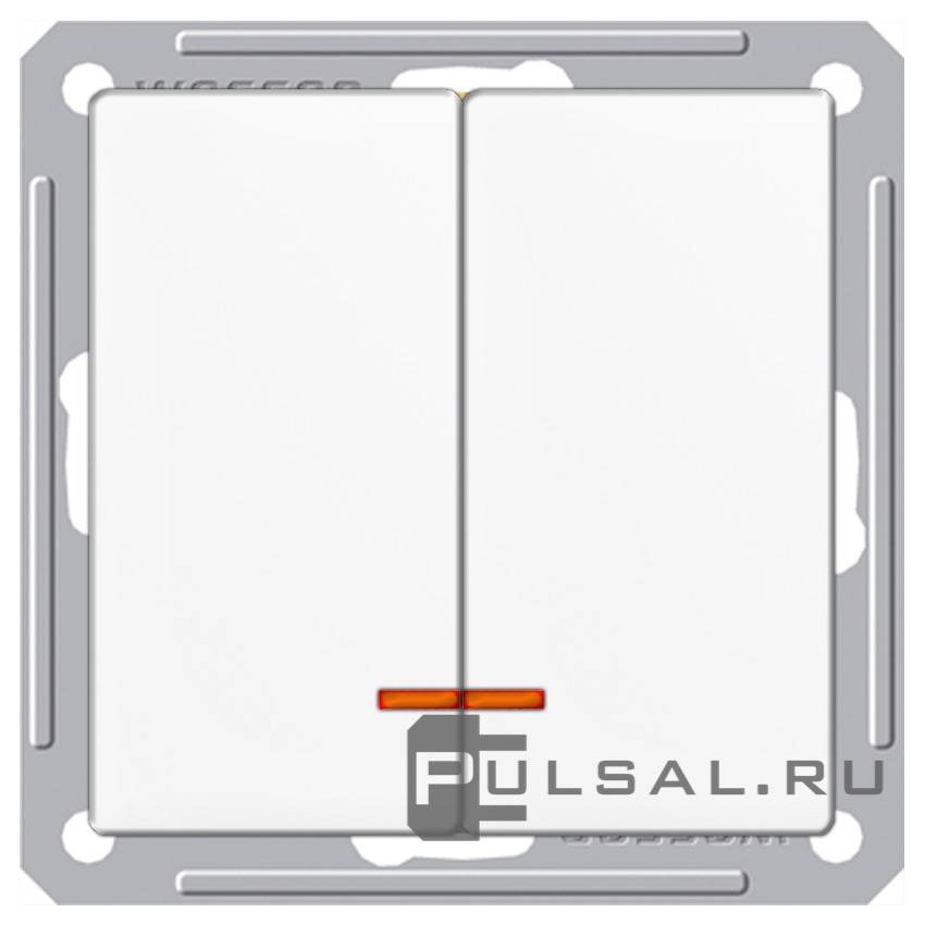 Выключатель двухполюсный 10А W59, одноклавишный, без подсветки, цвет - белый