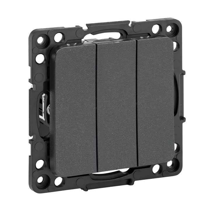 Выключатель Стокгольм, трехклавишный, без подсветки, цвет - черный