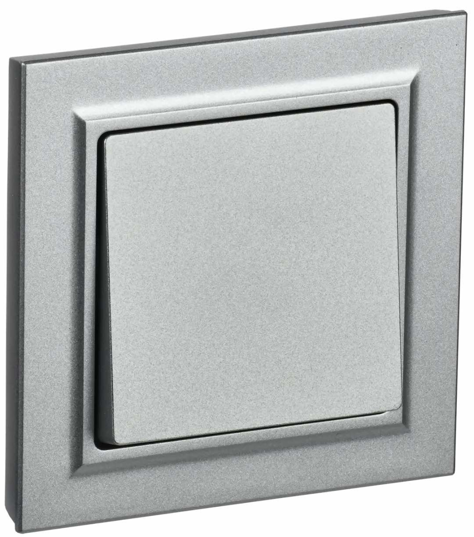 Выключатель с рамкой BRITE, одноклавишный, без подсветки, цвет - алюминий
