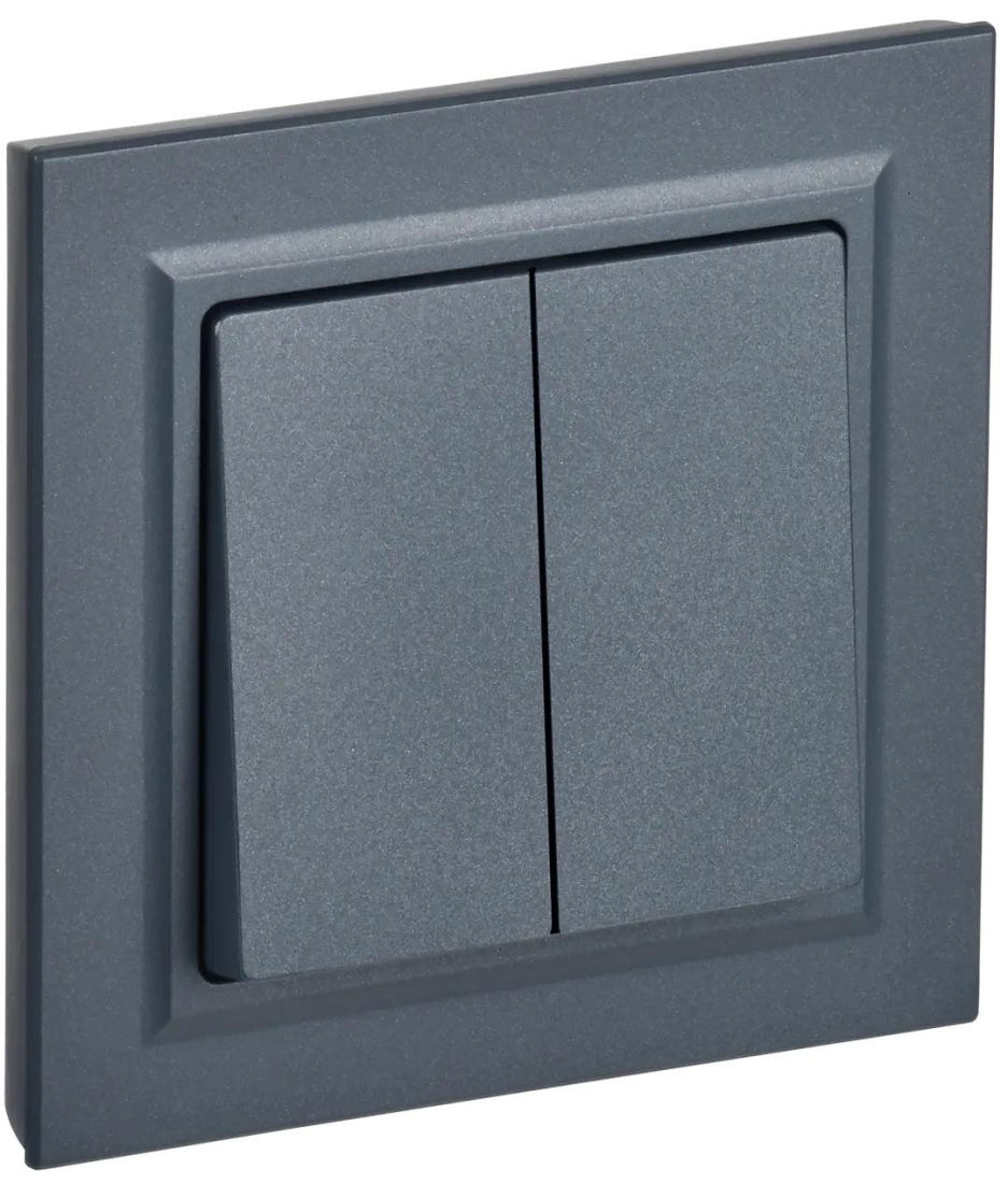 Выключатель с рамкой BRITE, двухклавишный, без подсветки, цвет - маренго