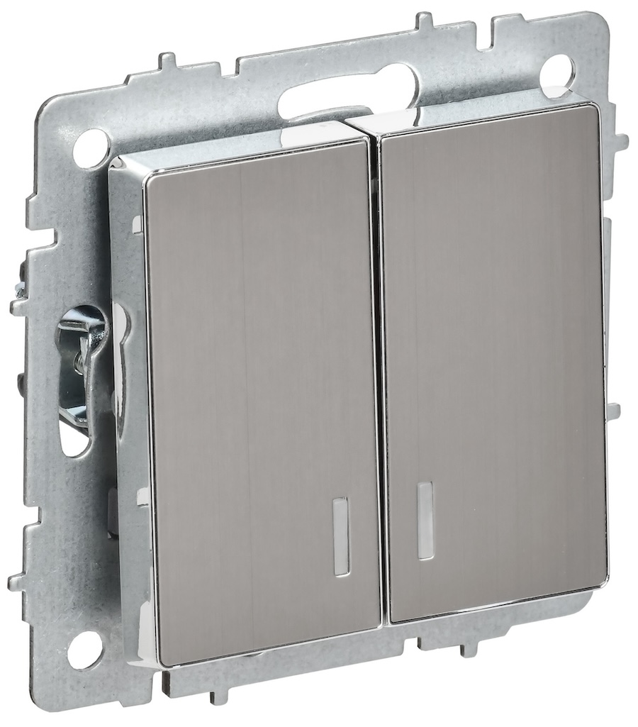 Выключатель BRITE, двухклавишный, с подсветкой, цвет - никель